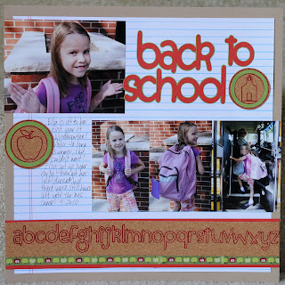 Being I have 4 kids that go to school each year, I get a bit behind on these back to school layouts! So this is from last year, my daughter on her way to kindergarten. You can get the Design Studio file for this page here... back to school