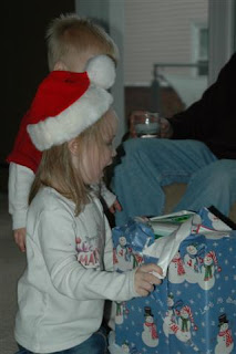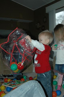 Saturday we did our annual Chomas family Christmas!!! And of course we were all spoiled rotten as usual! Dad got a gift card to Home Depot, a handsaw and some martini glasses. I got a gift card to the scrapbook store and some gloves. Tay got 2 gift cards for shopping and some body wash. Cam got a game for the Wii and a remote control helicopter and some books. Ella got Squakers McCaw, a talking parrot, Wac-a-mole and a talking piggy bank. Jack got a ball pit with 120 balls and a bunch of puzzles! We got Pa some super expensive whiskey, a remote control helicopter and a bunch of cheese and Ma got a foot massager, a set of knives and a bunch of pictures she had been wanting. See, all of us got spoiled!!! We all loaded up and went to Ponderosa for dinner, so no clean up around here! Then we played toys all night!