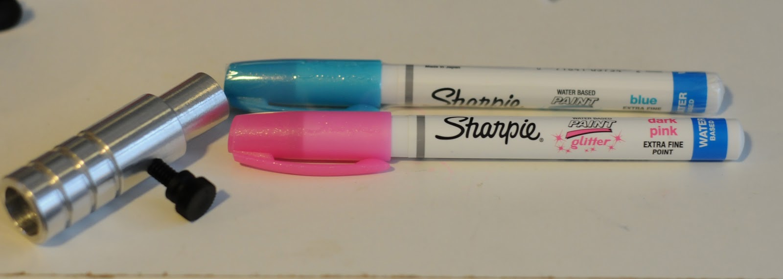 Here is what the Sharpie paint markers look like in the Chomas Creations adjustable marker holder inside of the Cameo, of course I used black. I found them so far at Michael's, JoAnns and Hobby Lobby.