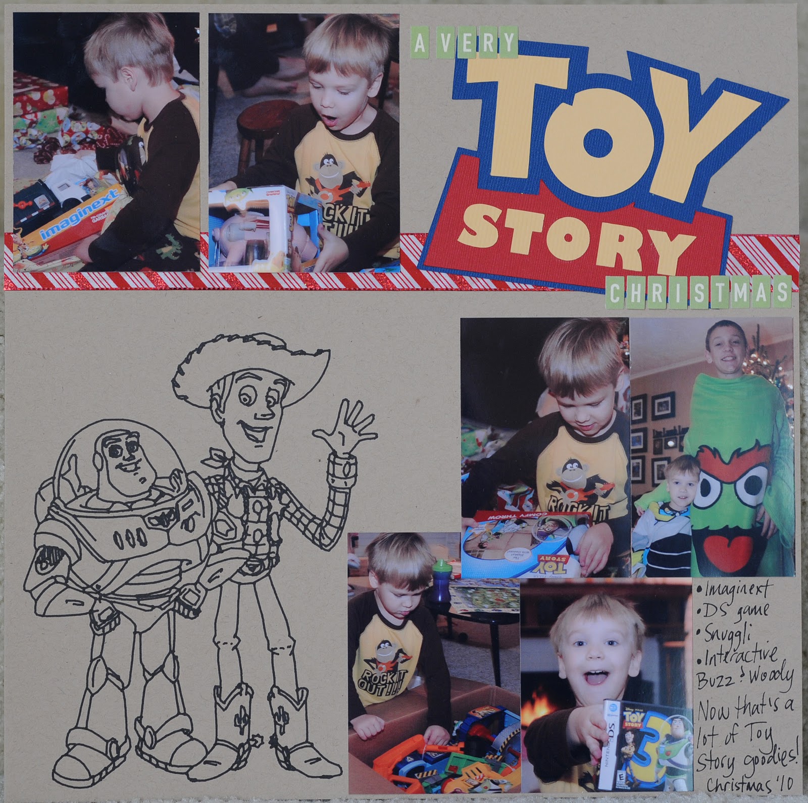 Being we are getting close to the holidays (eeeek!) I wanted to work on a Christmas page for my youngest, who had a very Toy Story Christmas! He just loved the movie Toy Story, and really liked Buzz Lightyear, so we loaded him up with all the Toy Story goodies he asked for!