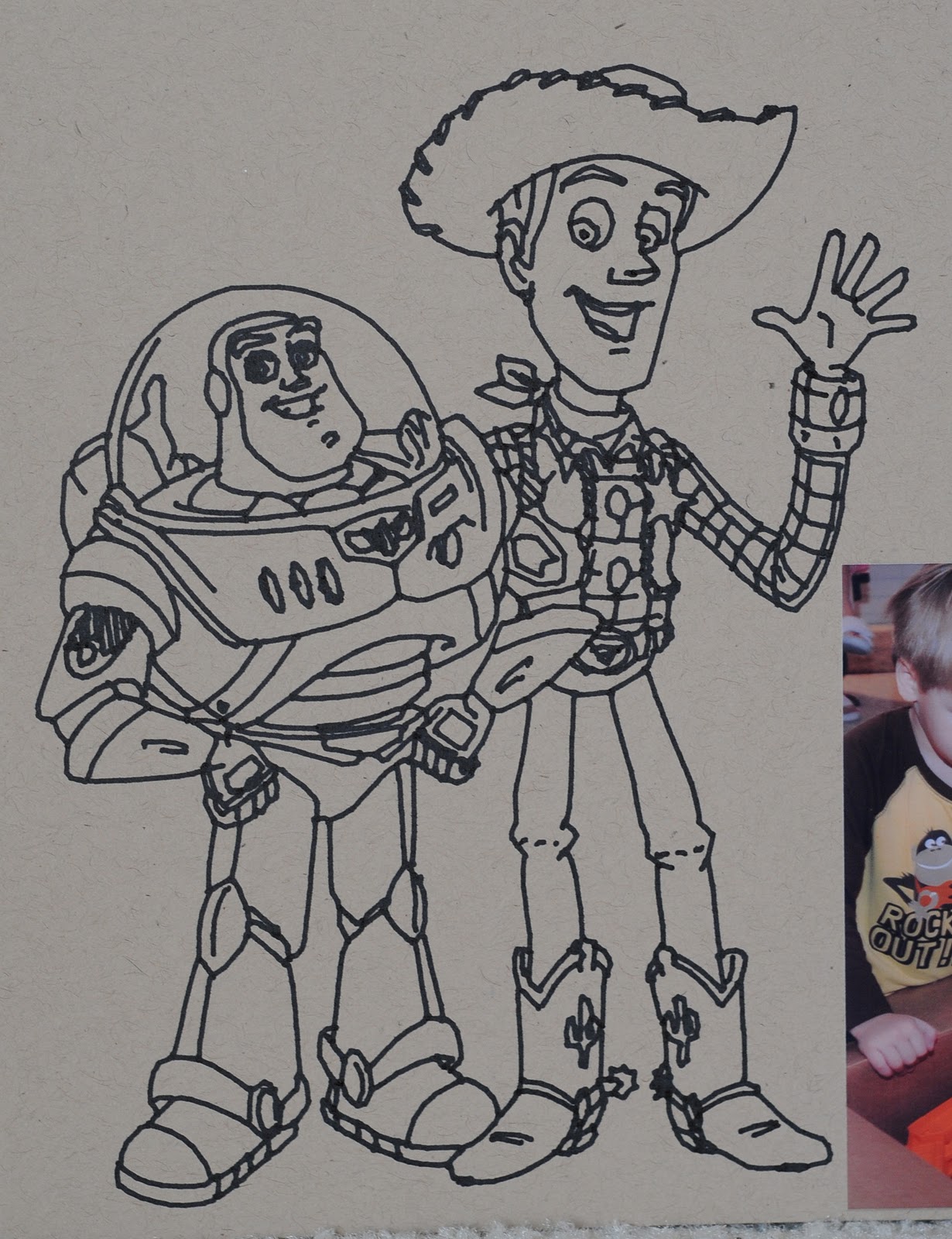 Wow, Amy, your creativity never ends. Fantastic job on your LO. I love how the outlined Woody and Buzz looks like the beginning of the movie (my kids are Toy Story fanatics, too...LOL)