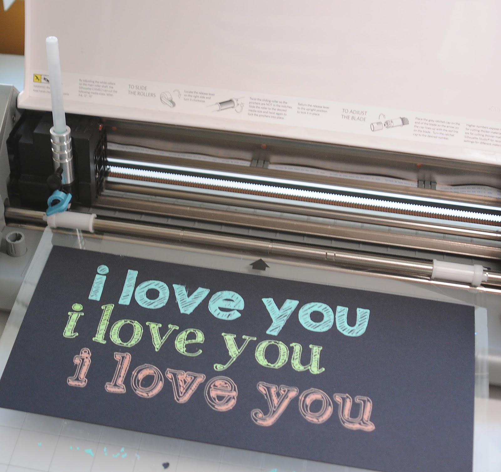Make sure you highlight the outside of your design each time you do this and keep changing the offset up and down until it looks full. This is a small design, so I did the internal offset 4 times and it completely filled in my design. I then added a Sakura Moonlight Gelly roll gel pen to the Chomas Creations adjustable pen holder, adjusted the thickness to 6 and the speed to 3 and drew my design. Notice that my design is moved away from the white rollers to prevent smearing.